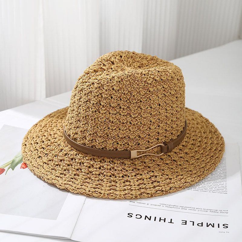 Color: beige, khaki, coffee, black Style: Elegant Fabric name: Cotton polyester blend Hat top style: dome shaped Hat brim style: flat brim Size: 54-58CM – One size Function: Breathable, Sunshade